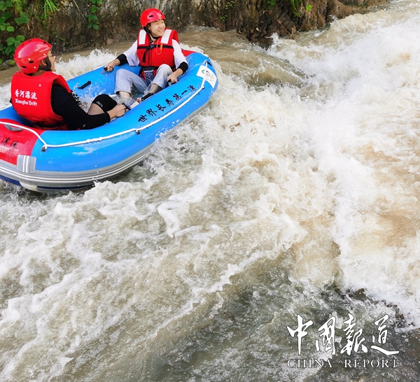 這么高的氣溫,加上疫情影響,不能去爬山,不能去涉水,而慢長(zhǎng)酷熱的暑假卻無(wú)法阻止人們外出旅游激情,漂流,就成為該地區(qū)夏季旅游的熱門目的地。在香河漂流景區(qū),大家都隨風(fēng)而去,這里樹(shù)高溝深,河面寬闊,不光陰涼爽快,而且漂流驚險(xiǎn)刺激。景區(qū)里,有的漂流,有的踩水,有的納涼,年輕人吶喊吹哨尖叫,中老年人陪看兒孫,村姑還在河邊唱著山歌,而相當(dāng)一部分人則刷視頻,上抖音,大家在一起避暑,其樂(lè)無(wú)窮。