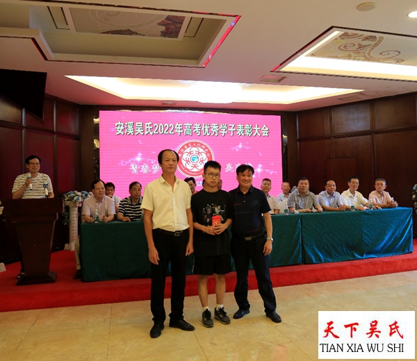 天下吳氏網(wǎng)訊(安溪工作站吳建法供稿)8月13日,福建省安溪縣吳文化研究會、安溪吳氏宗親聯(lián)誼會在安溪天和酒店舉行2022年高考吳氏優(yōu)秀學(xué)子獎學(xué)表彰大會。