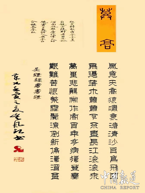中國報道訊(吳蜀豐報道)吳風(fēng)銀,又名吳鳳銀,齋號瘋?cè)她S主、瘋爺堂主。筆名金艮。1956年出生,黑龍江省大慶市人。深圳國學(xué)與吳文化書法院院長。中國當(dāng)代實力派書法家。中國書法家協(xié)會會員,黑龍江省書法家協(xié)會會員,中國石油作家協(xié)會會員。獨創(chuàng)了兩種新奇唯美、獨樹一幟的書法書體“吳體隸書”和“吳體隸變”,并親自編纂出版了《吳體隸書吳體隸變書法字典》。其書法作品被國內(nèi)外友人和藏家收藏。