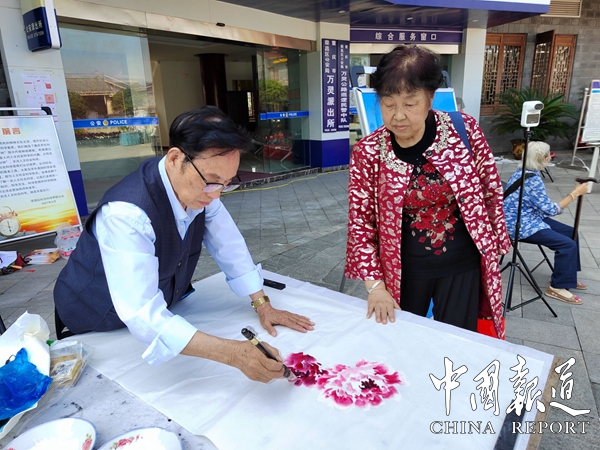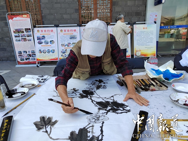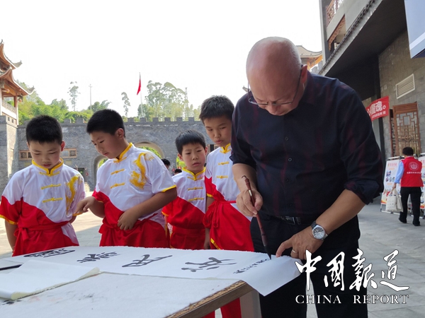 本次活動內(nèi)容有傳統(tǒng)文化與現(xiàn)代風(fēng)格相結(jié)合的幼兒鼓舞“中國范兒”;表達(dá)愛國熱情的男聲獨(dú)唱“可愛的中華”和幼兒舞蹈“童心向黨”、“中華孝道”;還有朝氣蓬勃的青少年展示的重慶市非遺地方拳種“蘇門拳”和“少林拳”;同時將古琴獨(dú)奏與現(xiàn)場書畫創(chuàng)作相結(jié)合,當(dāng)?shù)貍鹘y(tǒng)文化界具有代表性傳承的陳子莊弟子廖正倫,屈義林弟子胡代勛,蘇葆楨弟子戴奇,以及龔必友、姜永久、毛健德等等書畫家們紛紛揮毫潑墨,抒發(fā)慶祝國慶,喜迎二十大的喜悅心情;現(xiàn)場還進(jìn)行了數(shù)次社科普及知識有獎問答,發(fā)放社科小手袋、圍腰等惠民禮品數(shù)百份;傳統(tǒng)文化志愿者們表演手語舞蹈“國家”,傳遞美好的祝愿:愿祖國富強(qiáng),民族團(tuán)結(jié),齊心努力奔小康。