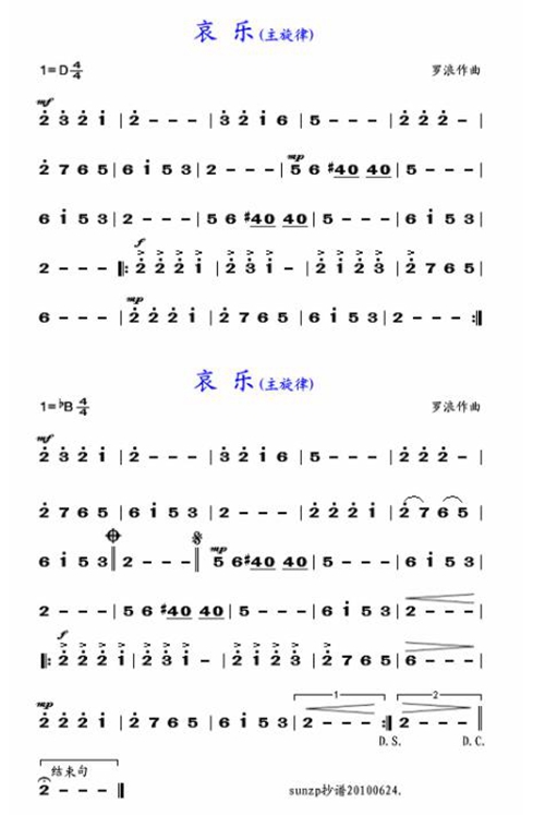 1945年,羅浪等三人皆為晉察冀軍區(qū)政治部所屬的抗敵劇社音樂隊骨干成員,羅浪本人擔(dān)任指揮兼作曲。這一時期,音樂隊來了個綽號“喇叭轉(zhuǎn)”的民間嗩吶藝人,此人為保定人氏。在“喇叭轉(zhuǎn)”演奏的曲目中,有一支婉轉(zhuǎn)凄切的曲子,據(jù)他本人說是專用于紅白喜事。羅浪等人頗感興趣,便記下了此曲樂譜。后來羅浪了解到,在華北一帶流行的戲曲,如秦腔、山西梆子、河北梆子中,均有此調(diào),其中多出于名劇《黛玉葬花》。每天全國各大殯儀館內(nèi),約200萬逝者家屬免費使用。根據(jù)音樂著作權(quán)使用規(guī)定,各殯儀館使用《哀樂》應(yīng)支付每次一元人民幣的版權(quán)費,但羅浪拒收版權(quán)費。他生前曾說過:“《哀樂》是土生土長的民間音樂,誰也不能把名字掛在這樣的作品上。我們要做的是從民間發(fā)現(xiàn)這樣的作品,記譜、編曲和推廣。我也用不著收什么音樂使用費。”