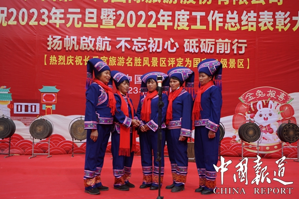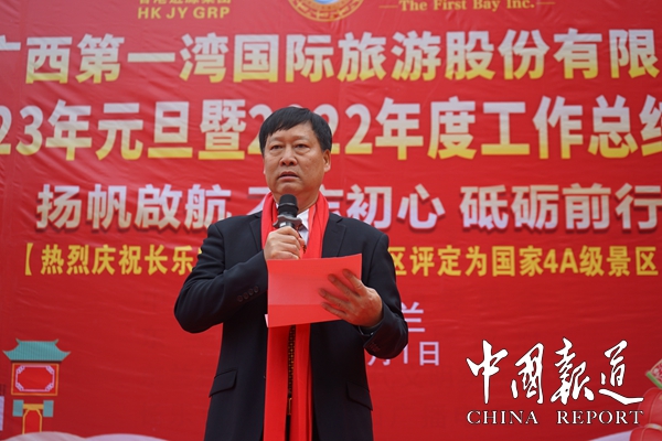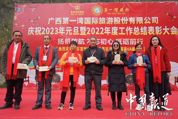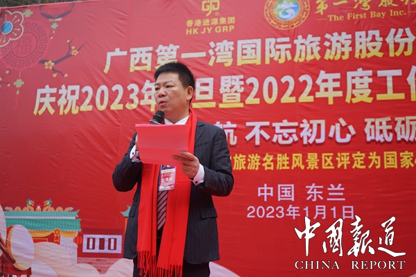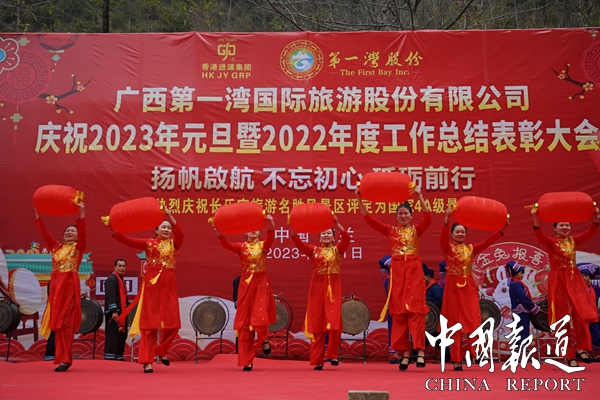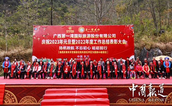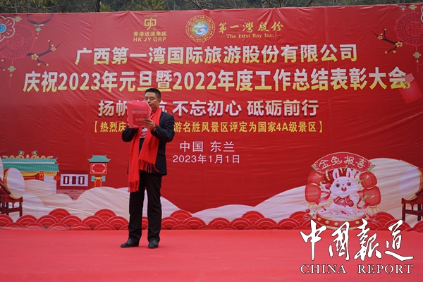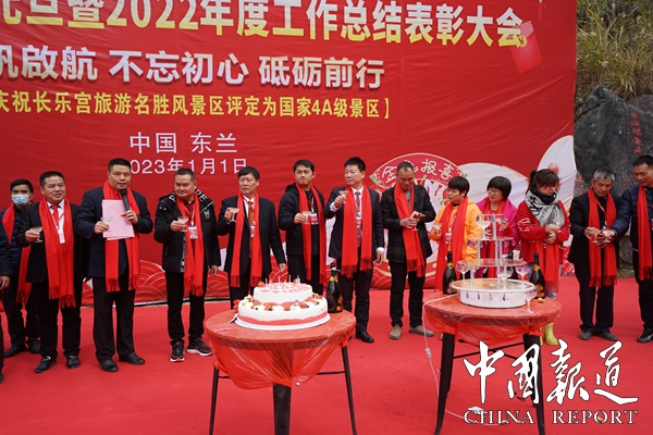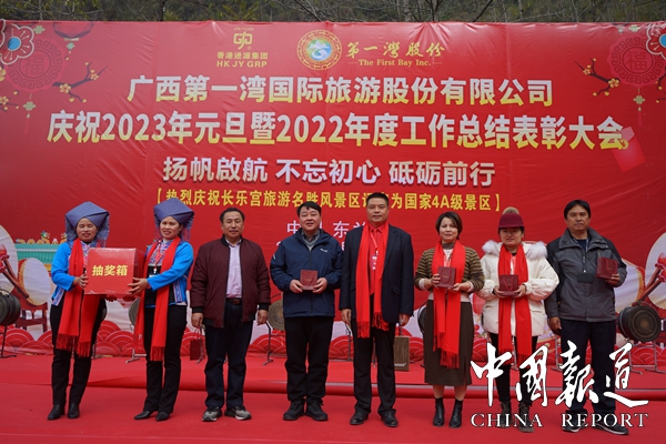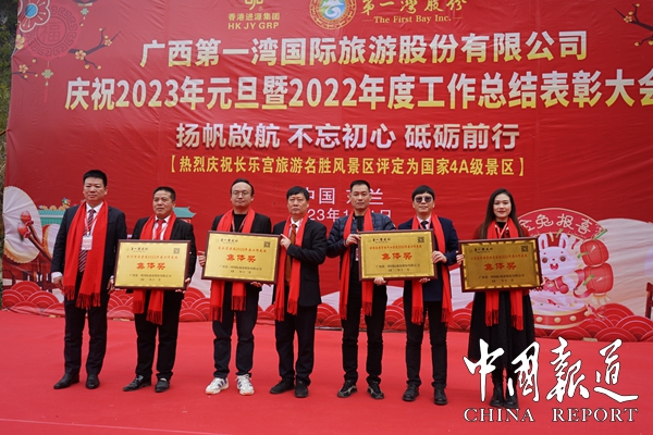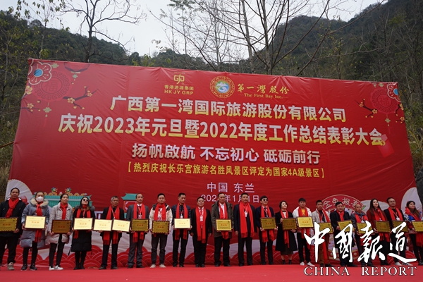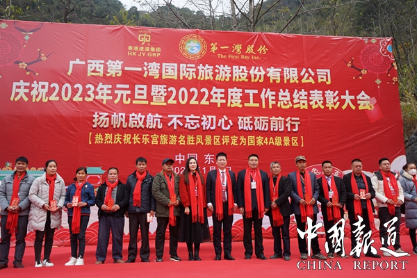 中國報道訊 (通訊員 岑福山 覃 源 麥國新) 2023年元旦,伴隨著新年里的春色,在廣西2022年首批評為國家4A級旅游風(fēng)景區(qū)的東蘭縣長樂宮旅游名勝風(fēng)景區(qū),香港進源集團廣西第一灣國際旅游股份有限公司在激動與歡樂的氣氛中,齊聚這里,舉行”揚帆起航,不忘初心, 砥礪前行”2022年年度工作總結(jié)表彰大會暨長樂宮評定為國家4A級旅游風(fēng)景區(qū)慶?;顒?。