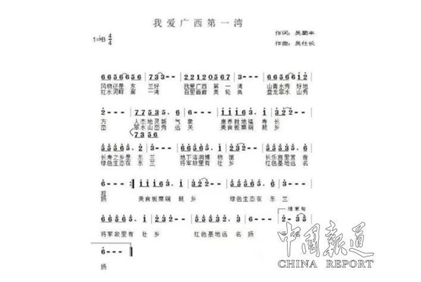 據(jù)天下吳氏網(wǎng)總編《我愛廣西第一灣》歌詞作者、資深媒體人、作家、中國報(bào)道《魅力城鄉(xiāng)》主編吳蜀豐介紹,《我愛廣西第一灣》不僅是廣西第一灣國際旅游股份有限公司對外形象展示的企業(yè)之歌,主要是宣傳展示人文豐富、物產(chǎn)豐厚的東蘭旅游業(yè)。