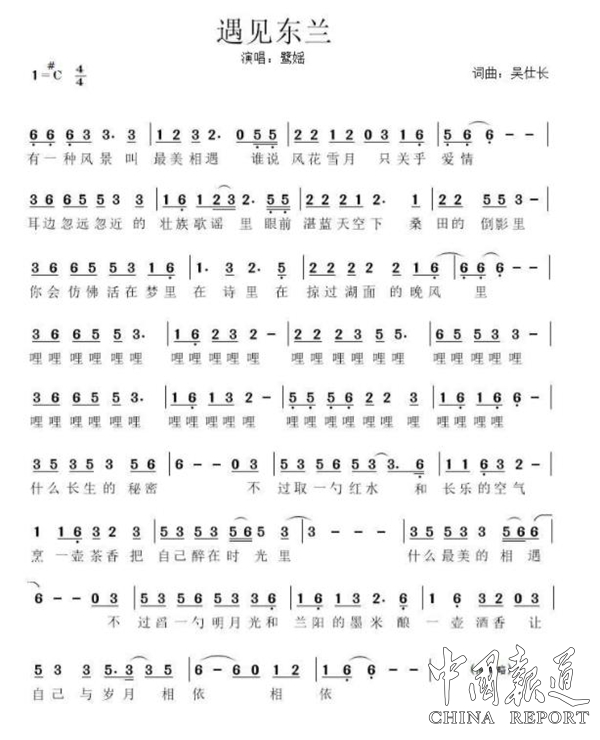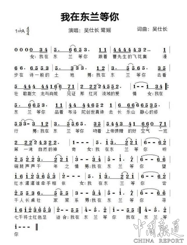 我在東蘭等你,跟著曹先生的飛花集,漫步在詩一般的土地;我在東蘭等你,去看壯歌劇文龍與肖妮,見證那紅河流域的愛情。我在東蘭等你,品著布洛陀創(chuàng)世真諦,去長樂山靜心的修行;我在東蘭等你,吻著上帝饋贈(zèng)的好空氣,一覽第一灣自然的神奇……歌詞從東蘭的人文、歷史、生態(tài)等入手,著重渲染了一副生動(dòng)和諧美麗的山水圖畫,情在景中,人在畫里,愛在歌中。整首歌曲在悠揚(yáng)的古箏中開曲,帶有古樂風(fēng)格,又有現(xiàn)代氣息,通過唱作人吳仕長史詩感的聲線與新秀歌手鷺?gòu)勄宄喝崦赖纳ひ粝嗷υ捙c交融,帶你領(lǐng)略東蘭的無限風(fēng)采和迷人魅力。