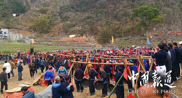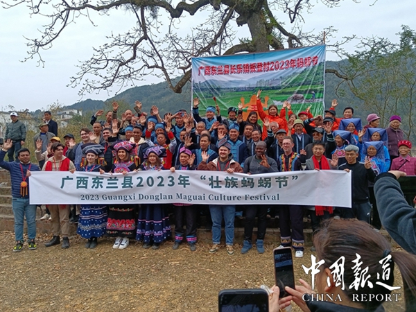 中國(guó)報(bào)道訊 (通訊員岑福山 覃 源)2月20日,廣西東蘭縣2023年紅水河流域銅鼓文化生態(tài)保護(hù)區(qū)長(zhǎng)樂宮景區(qū)板登村“壯族螞拐節(jié)”活動(dòng)成功舉辦,吸引了大批中外游客,來自非洲、亞洲、歐洲的伊朗、南非、美國(guó)、英國(guó)、柬埔寨、阿薩克斯坦等八個(gè)國(guó)家多名游客前來觀賞,暢游天下溶洞奇觀長(zhǎng)樂宮景區(qū),國(guó)內(nèi)中國(guó)日?qǐng)?bào)、新華網(wǎng)、河池日?qǐng)?bào)等十幾家報(bào)社媒體也前來觀賞報(bào)道,把活動(dòng)推向高潮。