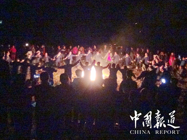 當(dāng)晚,來自各地的近萬(wàn)名游客和當(dāng)?shù)厝罕姎g聚一堂,在銅鼓、山歌、篝火,入戶對(duì)歌中盡情感受著螞拐文化的神奇魅力。
