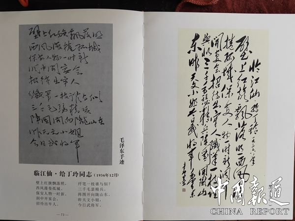 觀黑子作品:運(yùn)筆自如流暢,用墨濃淺相宜,臨其心而不泥其跡,得其精髓而不盡求其貌似,把千古絕唱的詩詞和大氣超然的書法藝術(shù)完美的結(jié)合在一起,將毛澤東詩詞中的哲理、博大、豪放、表現(xiàn)得淋滴盡致。