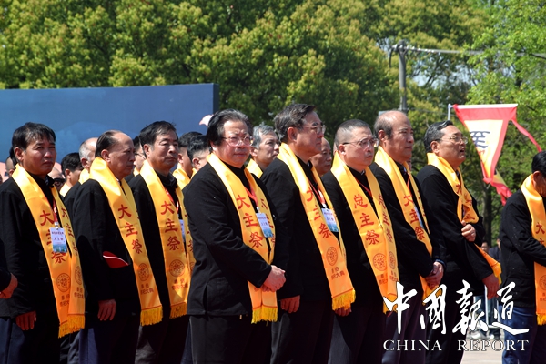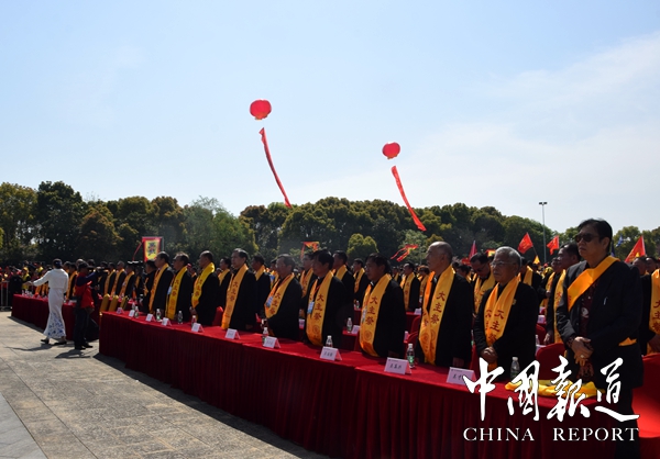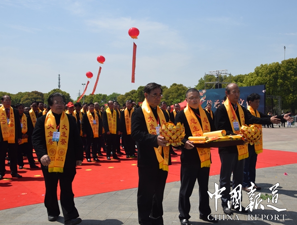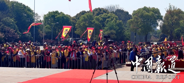 陽光燦爛,風(fēng)和日麗將泰伯故里滋潤得分外秀麗。巍巍鴻山壯闊肅穆,松柏滴翠的鴻山猶如一幅美麗的山水畫卷,在陽光中更顯莊嚴(yán)神圣。在鴻山泰伯陵祭祀廣場上,來自新加坡、馬來西亞、韓國、菲律賓、英國、香港、澳門、臺灣,北京、上海、天津、重慶、遼寧、廣東、廣西、海南、湖南、湖北、安徽、云南、四川、江蘇、江西、黑龍江、貴州、陜西、山西、黑龍江、河南、河北、福建等地1000余名吳氏代表相約參加泰伯祭祀大典。