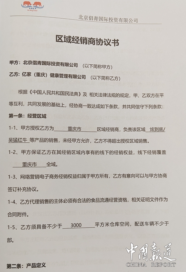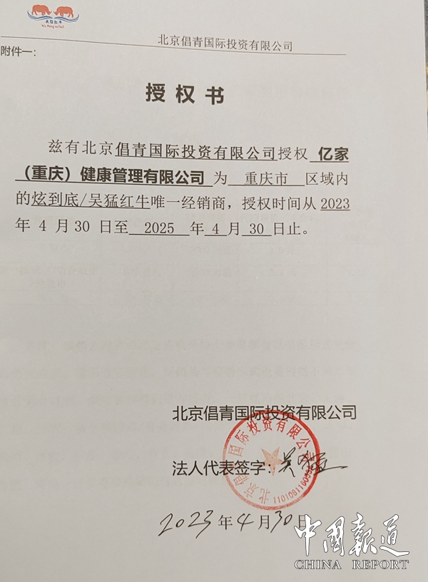 中國報道訊(吳蜀豐報道)4月30日,億家(重慶)健康管理有限公司與吳猛紅牛創(chuàng)始人?北京昌青投資有限公司在廣東省河源市和平縣吳猛紅牛生產(chǎn)基地正式簽定戰(zhàn)略合作協(xié)議。據(jù)《區(qū)域經(jīng)銷協(xié)議》規(guī)定,由億家(重慶)健康管理有限公司全權(quán)負(fù)責(zé)四川省和重慶市地區(qū)吳猛紅牛銷售總代理權(quán)。