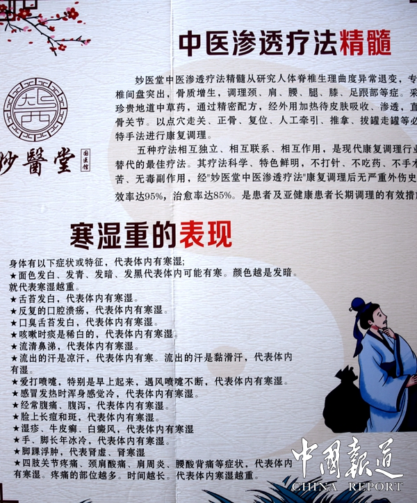 中國報(bào)道訊(吳蜀豐報(bào)道)5月11日,路過重慶渝北加州城市花園后大門正街,發(fā)現(xiàn)妙醫(yī)堂國醫(yī)館招牌下一則豎式標(biāo)語“無效不收費(fèi)”,帶著疑問走進(jìn)這家國醫(yī)館,見到該店負(fù)責(zé)人吳雙全并說明來意,據(jù)妙醫(yī)堂國醫(yī)館館長吳雙全介紹,不看廣告看療效,這是當(dāng)今患者的共同愿景,無效不收費(fèi)便是佐證前者的承諾。