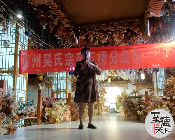 萬州吳氏宗親會發(fā)起人之一吳浚銘(候選會長)對萬州吳氏宗親會工作作了總結(jié):我姓吳,我自豪,我驕傲。萬州吳氏將為傳承吳氏文化,弘揚至德精神;將助推吳氏企業(yè),惠澤吳氏宗親;實施自愿認祖歸宗共生,飲水思源共贏為宗旨。凝聚萬州吳氏宗親抱團發(fā)展,實現(xiàn)萬州吳氏一家親。
