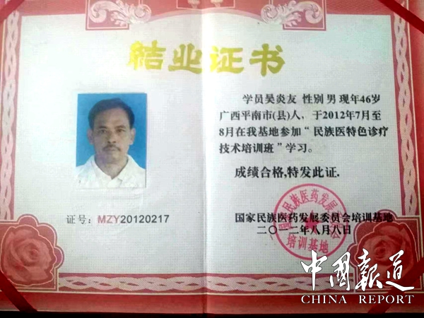在廣西平南縣同和鎮(zhèn)上,獲國家中醫(yī)藥管理局民族醫(yī)藥發(fā)展委員會頒發(fā)授予的“頸肩腰腿病,慢性預(yù)難病”特色名醫(yī)吳炎友,從事中醫(yī)診療30多年,醫(yī)治患者數(shù)萬人,成為遠近聞的好醫(yī)生。