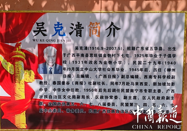 7月21日上午,廣西吳氏經(jīng)濟(jì)文化發(fā)展聯(lián)誼會(huì)吳茂柏會(huì)長、副秘書長吳明春、副會(huì)長吳勇新、理事吳開太、吳榮原和中國報(bào)道《魅力城鄉(xiāng)》主編吳蜀豐等一行,前往廣西人民政府原副主席吳克清故鄉(xiāng)——廣西平南縣思旺鎮(zhèn)金匏村進(jìn)行緬懷式的采訪。
