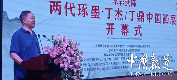 隨后,俞貴麟、羅平飛、楊士秋、何事忠、宋愛榮、何慶、王頻、王岳、陳勁、魏東等嘉賓上臺,按動啟動球,宣布“京彩武隆·兩代琢墨”——丁杰/丁鼎中國畫展隆重開展。