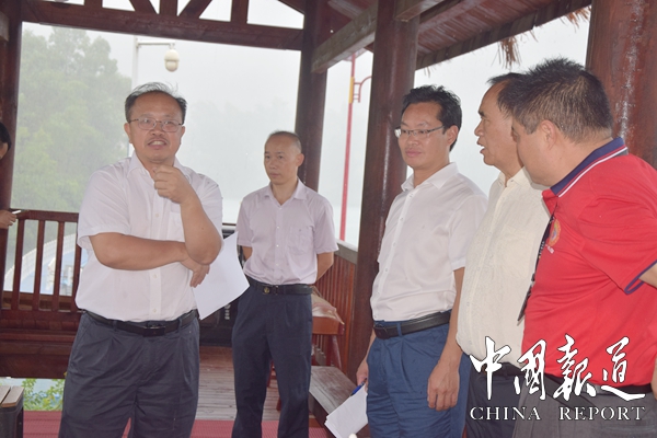 中國報道訊(通訊員岑福山 覃 源)8月7日,廣西河池市人大常委會副主任韋桂元,冒雨來到東蘭縣坡豪湖國家濕地公園旅游碼頭檢查指導(dǎo)工作,東蘭縣人大常委會副主任黃云及市、縣有關(guān)部門和長樂鎮(zhèn)領(lǐng)導(dǎo)陪同檢查。