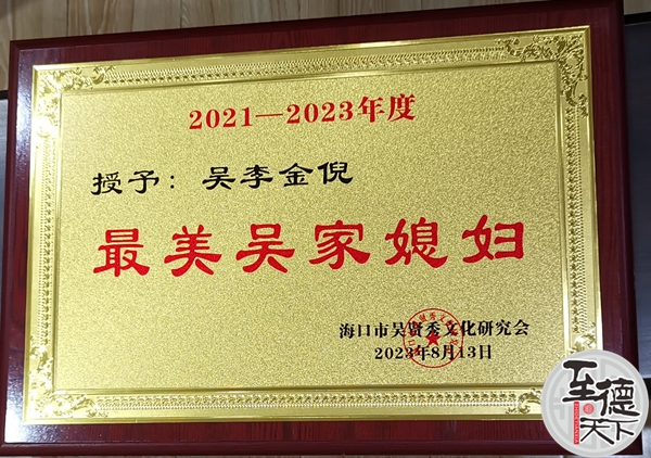 至德天下網(wǎng)訊(吳蜀豐)8月13日,??谑袇琴t秀文化研究會會員表彰大會暨高考優(yōu)秀學(xué)子獎助學(xué)金頒發(fā)儀式上,她被評為吳家“最美媳婦”。