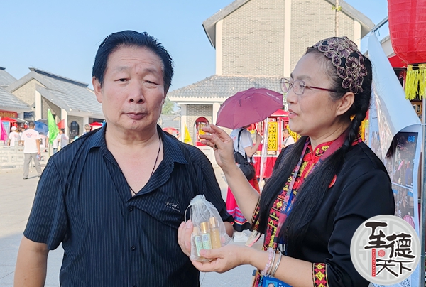 8月22日,在徐州沛縣新易城舉辦的第六屆月老節(jié)活動現(xiàn)場,在劉幫村非遺一條街產(chǎn)品展銷,在劉幫雕塑像正前方風(fēng)池先生顯眼攤位上,李金倪正在為游客介紹她的“風(fēng)池先生”和“鳳池益壽堂”等相關(guān)產(chǎn)品。她還現(xiàn)場展示其絕活徒手給病人理療,凡濕氣重者經(jīng)她純手工按摩、刮砂等手法,在不吃藥、不打針情況,下僅半小時后揭開超薄封朦后排除變色的毒素漢滴歷歷呈現(xiàn),患者頓覺神清氣爽。