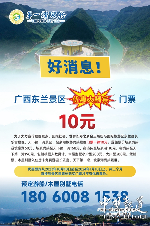 中國報道訊(通訊員岑福山)據(jù)廣西第一灣國際旅游股份有限公司有關負責人介紹,為回報社會,游世界長壽之鄉(xiāng)金三角巴馬國際旅游區(qū)東蘭縣長樂宮景區(qū),天下第一灣景區(qū),坡豪湖旅游碼頭景區(qū)門票一律僅為10元。