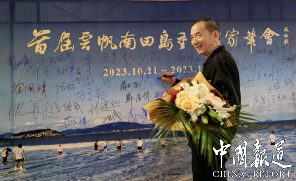 自題南田島海灘寫字照
