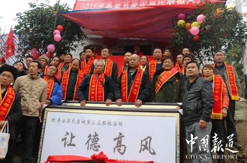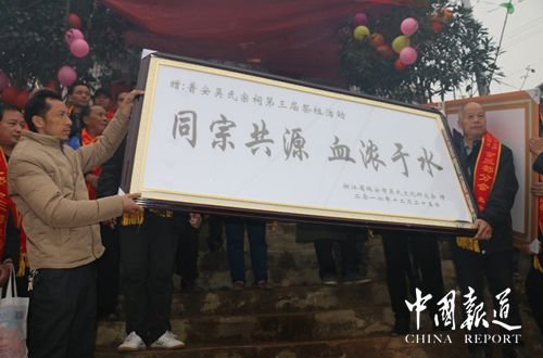 貴州省吳氏宗親總會會長吳學強一再強調,要宏揚至德精神,傳承吳氏文化,為發(fā)展吳氏經(jīng)濟會,希望吳氏族人振著精神,共同奮斗。并為這次盛會現(xiàn)場捐款人民幣兩千元,為振興吳氏文化而添磚加瓦。特別增送一塊匾,上面寫著“讓德高風”,充分印證了太伯的的三讓精神。浙江瑞安吳氏文化研究會副會長兼秘書長吳義者也為大家作了精彩演講,同時為這次盛會現(xiàn)場捐款人民幣一千元,增送一塊“同宗共源,血濃于水”的牌匾,體現(xiàn)了吳氏一家親。