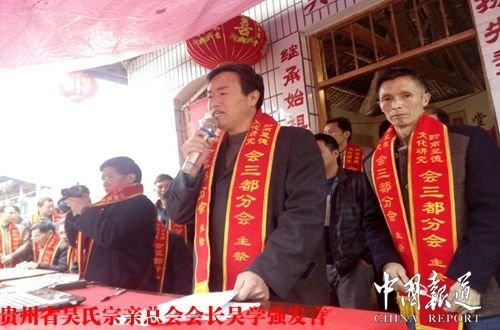 貴州省吳氏宗親總會會長吳學強及宗親代表在祭祖盛典上發(fā)言就如何搞好吳氏經(jīng)濟,如何宏揚吳文化,如何傳承至德精神各抒己見。