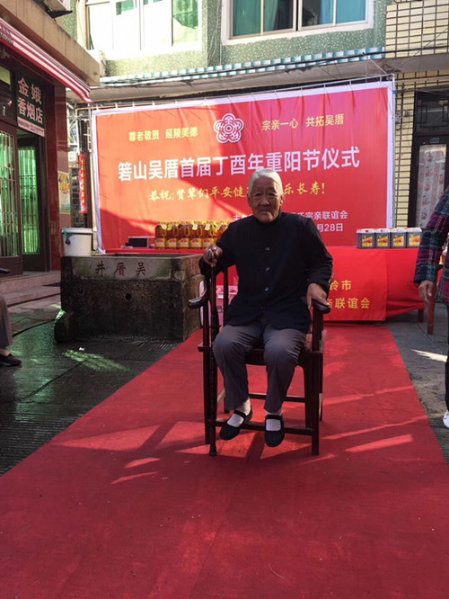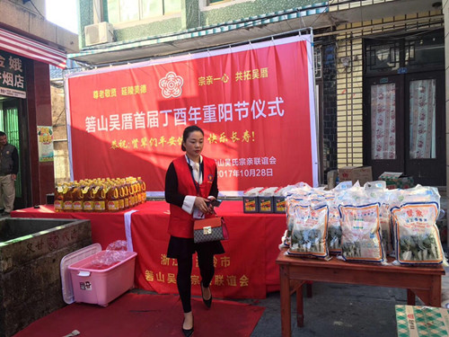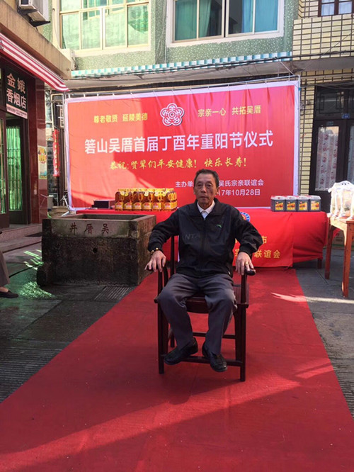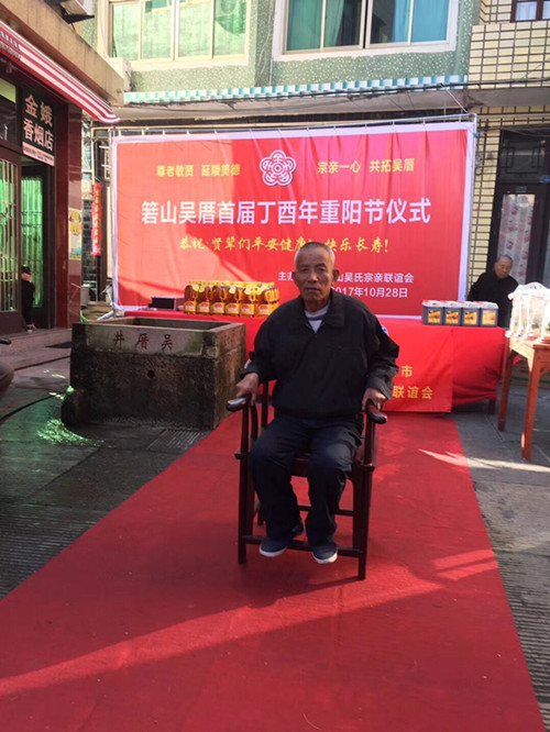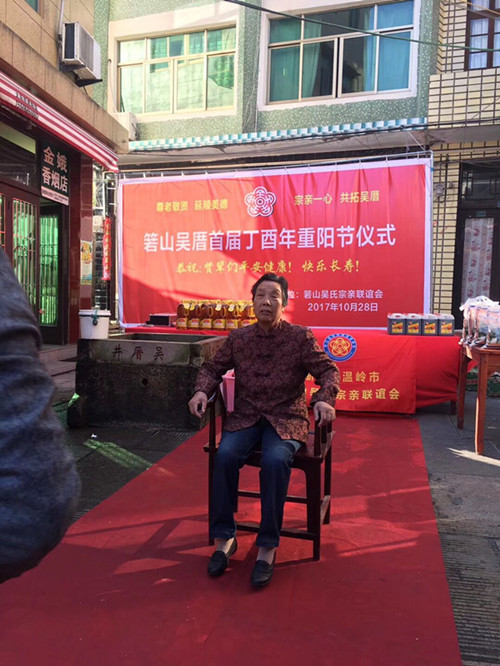 2017年10月28日,浙江溫嶺箬山吳厝宗親舉行重陽節(jié)慰問活動。箬山吳厝300年前,清康熙年間,先祖從福建進(jìn)京趕考,落榜后無顏見父老鄉(xiāng)親,來到浙江臺州溫嶺箬山,開拓荒無人煙的箬山吳厝。選址坐北向南,前有山泉后有靠山安家落戶,就是現(xiàn)在的宗祠原址和正前面的吳厝井。300年來現(xiàn)居住100多戶吳姓家族,是溫嶺唯一說閩南話的鄉(xiāng)村,箬山吳氏系福建省惠安開閩始祖仁祿公后裔。