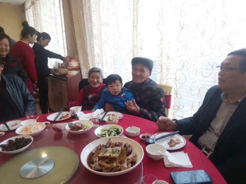 吳仁泉宗長九十五壽宴。仁泉夫人也已九十一歲。壽宴上二老格外開心,精神矍鑠。仁泉先生子孫個個健在,五世同堂,今天都出席了壽宴。泰伯吳氏祖地宗親聯誼總會上匾“五世同堂”。吳仁山、吳衛(wèi)祖、吳敏代表立興會長到場祝賀,出席壽宴。