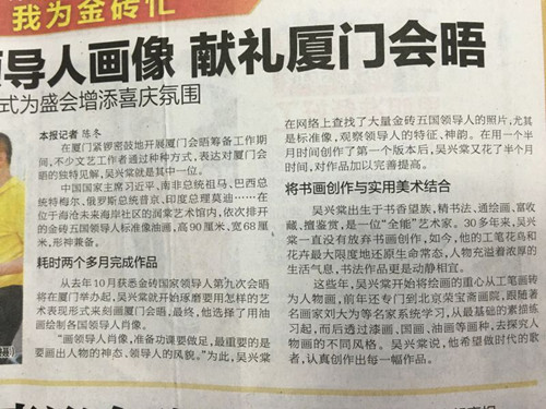 獻(xiàn)禮廈門(mén)會(huì)晤吳興棠繪制金磚國(guó)家領(lǐng)導(dǎo)人畫(huà)像