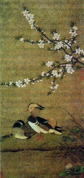 南宋院本桃花鴛鴦圖長三尺零八分,闊一尺四寸七分。無款。
