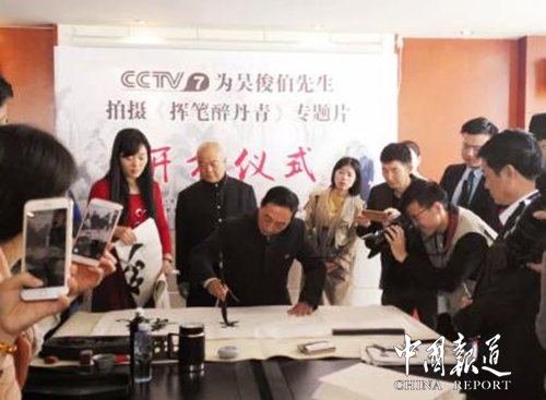 中國報道訊(特約撰稿 吳小平 吳雨)2017年9月29日,在南昌市洪都北大道的高能首座20樓的吳俊伯先生的書畫工作室里,中央電視臺第七頻道,為國內著名書畫家吳俊伯院士隆重舉行電視專題片《揮筆醉丹青》的開機儀式。