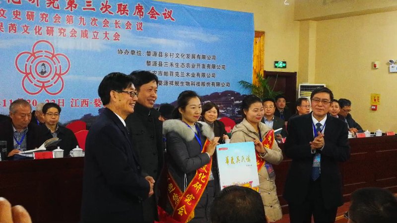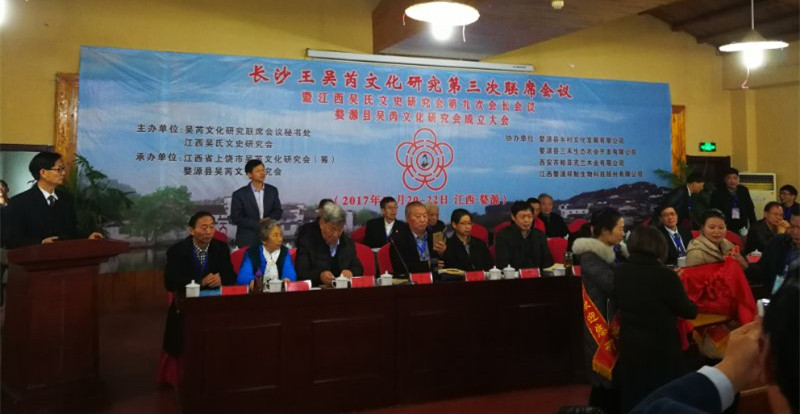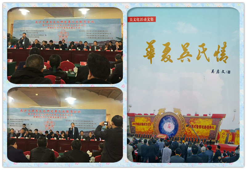 《上饒日報》記者 吳丹2017年11月21日江西婺源報道:我國第一部系統(tǒng)報道海內(nèi)外吳文化活動的經(jīng)典文集《華夏吳氏情》今日在中國最美鄉(xiāng)村江西婺源舉行首發(fā)式。參加首發(fā)式的宗親嘉賓有江西省人大常委會上饒地區(qū)聯(lián)絡處主任吳懷亮,中共婺源縣委副書記、縣長吳云飛,婺源縣政協(xié)主席汪春萍,上饒市政協(xié)文史委員會主任艾濤,婺源縣人大副主任汪立新、中共婺源縣委宣傳部副部長詹榮均和各地文史專家吳恩培、吳永敏、吳興勇、吳超來、吳大行和京、滬、蘇、浙、贛、鄂、豫、皖、黔、魯、閩共20余省參加“長沙王吳芮文化研究第三次聯(lián)席會議”的宗親代表約200人。首發(fā)式由江西吳氏文史研究會會長吳廣凡主持?!吨袊r(nóng)民報》湖南記者站站長吳增魁,介紹了本書的內(nèi)容和發(fā)行的意義,然后由艾濤主任和吳增魁站長揭牌。