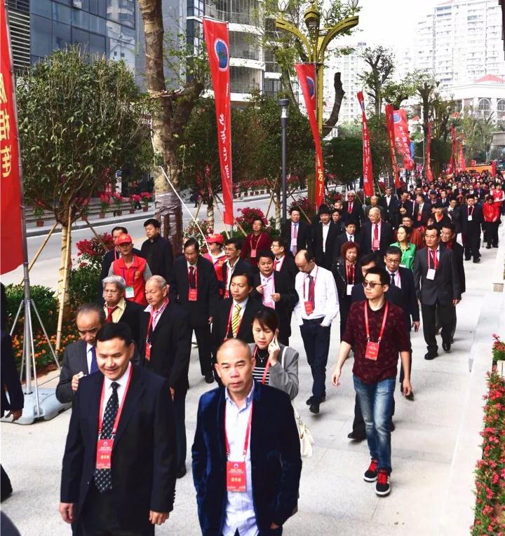 海內(nèi)外鄉(xiāng)親一同步入會場