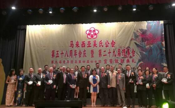 2017年10月22日,馬來西亞吳氏公會第五十八周年會慶暨二十九屆理事會、第九屆青年團、第四屆婦女團宣誓就職典禮在吉隆坡天后宮大禮堂隆重舉行。拿督吳啟熊聯(lián)任第二十九屆理事會主席。一屆世吳主席吳世才、二屆世吳主席吳良民和東莞吳銘煜名譽會長受邀出席了慶典儀式并致詞祝賀。圖為慶典儀式現(xiàn)場。