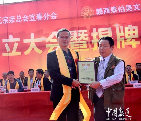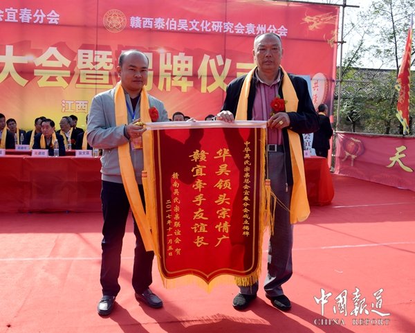 中華吳氏宗親總會宜春分會贛西泰伯文化研究會袁州分會揭牌儀式,同時(shí)還舉行由天下吳氏網(wǎng)聘任中華吳氏宗親總會主席吳文富為總顧問,中華吳氏宗親總會秘書長吳瑾程為首席媒體顧問授聘儀式,擂威風(fēng)鑼鼓,舞龍、舞獅及豐富多彩的文藝節(jié)表演為盛典活動(dòng)劃上完美祥和的句號。