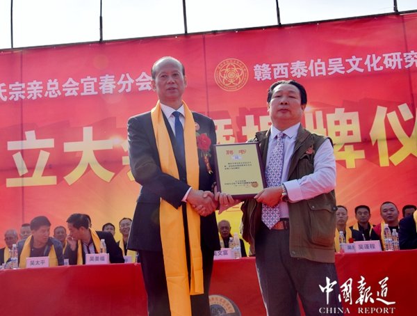 中國報(bào)道訊(記者吳蜀豐)今日,來自香港、福建、廣東、湖南、重慶、浙江、湖北、山西、河南、江西等地近2000名吳氏宗親代表相約江西省宜春市三陽鎮(zhèn)共同見證中華吳氏宗親總會宜春分會贛西泰伯文化研究會袁州分會正式成立掛牌慶典儀式。