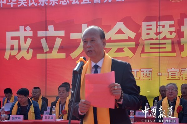 長期以來,宜春吳氏宗親積極融入中華吳氏宗親的大家庭,在文化交流、經(jīng)濟(jì)合作、親情互動(dòng)方面做了很多工作,得到了中華吳氏宗親的認(rèn)同。喜逢黨的十九大勝利召開,今天,中華吳氏宗親總會宜春分會成立了,這是中華吳氏的一大盛事!我們有理由相信:華吳宜春分會必將在 吳波 會長的帶領(lǐng)下,為弘揚(yáng)泰伯文化,加強(qiáng)吳族的團(tuán)結(jié)協(xié)作,推動(dòng)與海內(nèi)外吳氏的交流與合作作出新的更大的貢獻(xiàn)!我們有理由相信:華吳宜春分會必將在研究發(fā)掘姬吳文化,團(tuán)結(jié)海內(nèi)外宗親,敦睦宗誼宗情等方面作出自己的努力!“雄關(guān)漫道真如鐵,而今天邁步從頭越。”希望成立后的華吳宜春分會,能以博大的胸懷、堅(jiān)定的信心、務(wù)實(shí)的態(tài)度、前瞻的眼光,圍繞辦會宗旨,切實(shí)履行職能,加強(qiáng)合作交流,服務(wù)吳氏宗親。讓我們站在新的歷史起點(diǎn),乘勢而上,奮發(fā)有為,最大限度地凝聚宗親力量,服務(wù)地方經(jīng)濟(jì)的跨越發(fā)展,共同譜寫吳文化事業(yè)的新篇章。