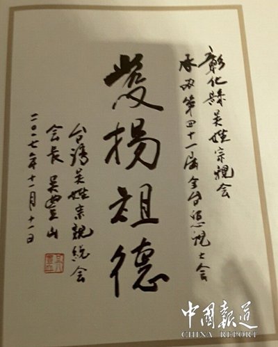 中國報道訊(特約釆編 吳美桂)第41屆臺灣省全國各地吳氏宗親交流與宗親聯(lián)誼會今日(11月11)在臺成功召開,臺灣省的國民黨榮譽主席吳伯雄應邀出席。目前吳姓成為臺灣十大姓之一在臺人數(shù)已達近百萬人口(949564人),在臺灣排名第7位。