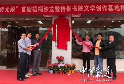 晉江詩人吳謹(jǐn)程、顏長江、施勇猛、李錦秋、李相華、許言共同為梧桐書院——晉江市文學(xué)創(chuàng)作交流基地揭彩。
