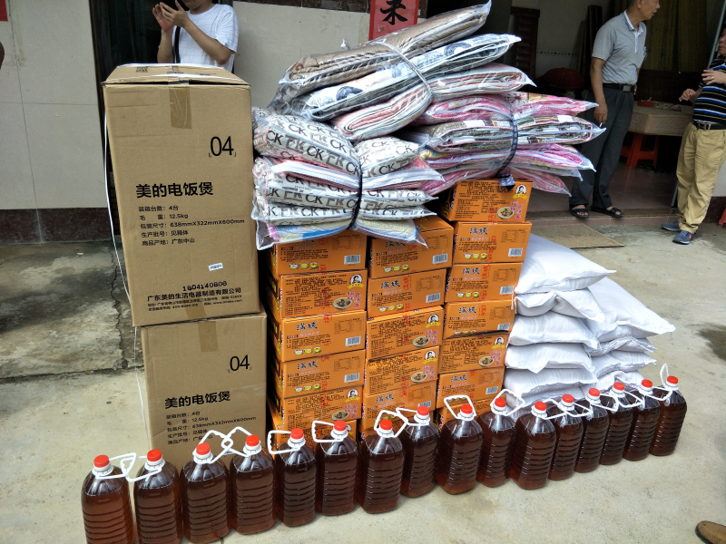 下午,深吳會的宗親又來到惠東縣大嶺鎮(zhèn)茗教村,這里也是這次惠東洪澇災(zāi)害中損失較嚴(yán)重的地方之一,而且這里是吳氏宗親聚居的村落。深吳會的宗親在這里與當(dāng)?shù)刈谟H會面,向受災(zāi)的宗親分發(fā)了慰問物資。