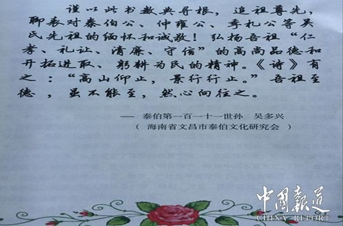 在歷史面前,任何個(gè)人都是很渺小、微不足道的。在史考方面不存在 我贏你輸?shù)膯?wèn)題,史考的責(zé)任只是將歷史的客觀揭示出來(lái)傳給后人,并為 之孜孜探索,而不是勝負(fù)角逐場(chǎng)。好奇和強(qiáng)烈的求知愿望將我?guī)雲(yún)俏幕?之門(mén),使命感鞭策我去追索塵封的歷史陳?ài)E,責(zé)任意識(shí)要求我務(wù)實(shí)求真。 所以,我必須申明:敝人雖不是學(xué)歷史的,但也略知史考的嚴(yán)謹(jǐn)性。我寫(xiě) 此文不是本命題研究的結(jié)束,相反是個(gè)開(kāi)始,本文只不過(guò)拋磚引玉而己。 冀有更多宗親和學(xué)者涉足其中,這是其一。二是,據(jù)史書(shū)記載,荊楚部族 首領(lǐng)、周文王、武王、成王老師鬻(yu′)熊受封為楚子,在率領(lǐng)族人自 關(guān)中移居江漢的民族大遷徙過(guò)程中開(kāi)拓“商於古道”。從此,該道也就成 為古代的軍事、政治、商賈之要道。就當(dāng)前已出土的商、周文物說(shuō),在沿 途各地中,商洛至丹江口出土的商、西周遺存相對(duì)密集,是否跟鬻熊這次 從漢中大遷徙到江漢有關(guān)。三是,鳳縣有“泰伯奔楚”之說(shuō),說(shuō)泰伯經(jīng)該 地去楚。經(jīng)查閱多部古籍都未見(jiàn)有此說(shuō)道,是否“泰伯奔吳”之誤,建議 有志于此的后人多留意。四是,歷來(lái)總說(shuō)商文化不過(guò)長(zhǎng)江,可是,1989 年 前后江西省考古所專家在江西省新干縣大洋洲鎮(zhèn)和在離此不遠(yuǎn),在古肖江 上游,距樟樹(shù)市城區(qū)西南 44 公里的山前鄉(xiāng)吳城村考古,除了發(fā)現(xiàn)大量的商 代青銅禮器、兵器、農(nóng)具以及玉器、陶鬲這類的陶器外,還在對(duì)該段城墻 進(jìn)一步挖掘時(shí),在近 4 米深的外城壕中發(fā)現(xiàn)了密集的商代人頭骨——不10 平方米內(nèi)發(fā)掘了近 20 具頭蓋骨和部分肢骨 在考古中被發(fā)掘出的頭蓋骨的產(chǎn)生一般有兩種情況 一種是祭祀中獵頭儀式的產(chǎn)物。就當(dāng)時(shí)發(fā)掘的情況來(lái)看 官達(dá)人墓穴,不可能是陪葬,那么, 可能是大量戰(zhàn)俘被割首所至。有專家認(rèn)為 路經(jīng)之地,也就是說(shuō),泰伯先到此地 筆者到過(guò)大洋洲、吳城,也到過(guò)周原 一行到此,見(jiàn)景懷鄉(xiāng),曾在這里安營(yíng)扎寨過(guò) 東走。這不過(guò)是個(gè)推斷,其準(zhǔn)確的結(jié)論有待于更多的考古發(fā)現(xiàn) 在這次考證過(guò)程中承蒙陜西省考古研究院秦漢研究室主任田亞岐教授 寶雞陳倉(cāng)博物館董衛(wèi)劍館長(zhǎng)熱心指導(dǎo)和幫助以及廈門(mén)吳國(guó)榮會(huì)長(zhǎng) 立興會(huì)長(zhǎng)、南陽(yáng)吳雷會(huì)長(zhǎng)深摯支持,表示由衷的感謝!