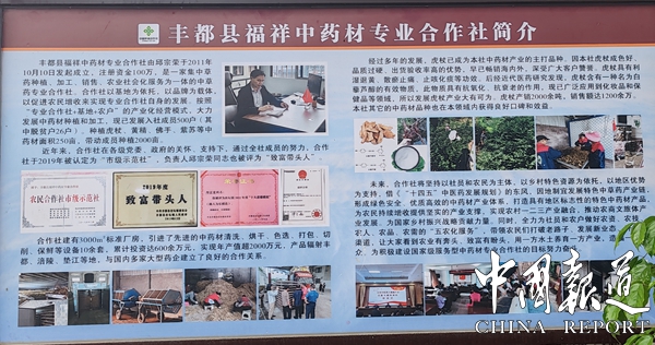 邱宗榮介紹,是從2005年發(fā)展青蒿種植,2011年開始聯(lián)農(nóng)帶農(nóng)大面積種植虎杖、通草,隨著種植規(guī)模不斷擴(kuò)大,個(gè)體工商戶已不能滿足發(fā)展需要,便成立了豐都縣福祥中藥材專業(yè)合作社,從事做初加工走到現(xiàn)在。